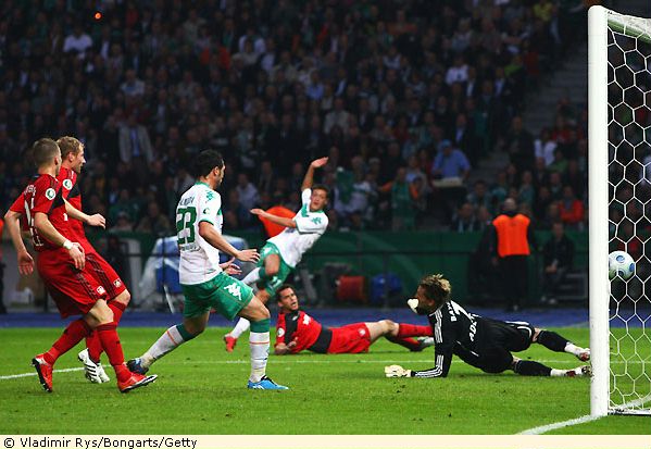 Dank an die schöne Glücksfee - dieser Pokal geht aber bald in Werder-Hände über